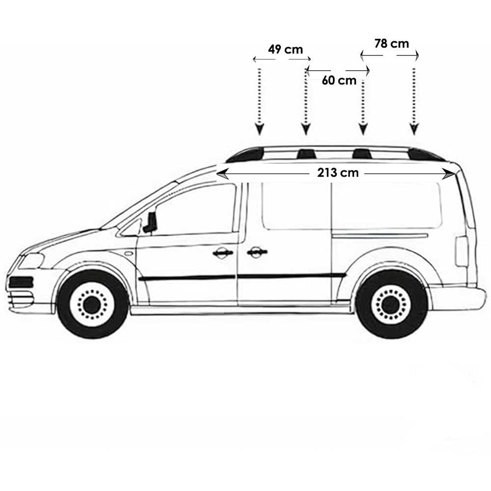 ΜΠΑΡΕΣ ΟΡΟΦΗΣ ΓΙΑ ΠΑΡΑΛΛΗΛΕΣ ΑΛΟΥΜΙΝΙΟΥ L2 ΑΣΗΜΙ ΓΙΑ VW CADDY 2003-2015 OMTEC - 2 τεμ.