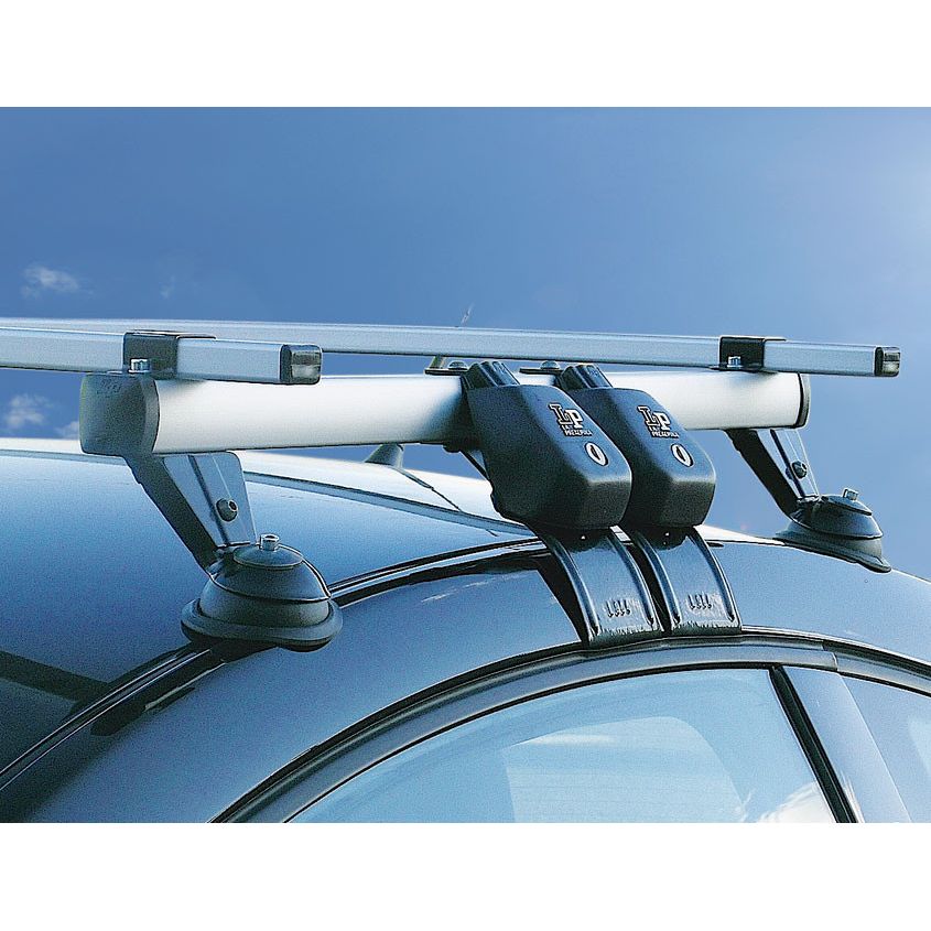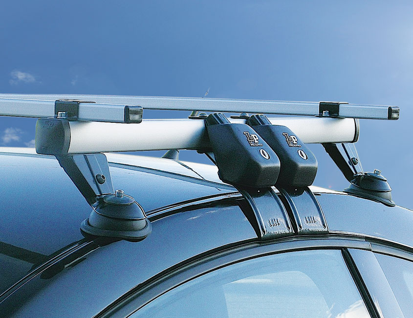 Σχάρα αλουμινίου για τρίπορτα αυτοκίνητα με υποστηρίγματα και συνδέσεις από χάλυβα βαμμένα με ειδικά χρώματα κατά της σκουριάς. Σχεδιασμένη για αυτοκίνητα με στρογγυλεμένες γραμμές στις οποίες είναι δύσκολο να στερεωθούν μπάρες οροφής.