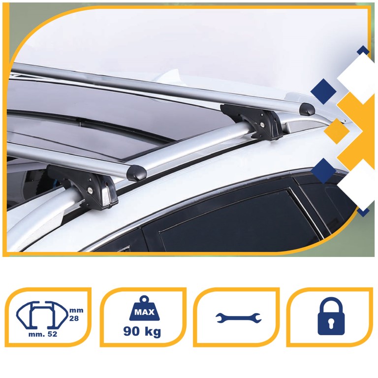 Αεροδυναμικού σχεδιασμού με οβάλ σχήμα (προφίλ) και εγκοπή σε σχήμα Τ (σιρίτι στο πάνω μέρος της μπάρας), το οποίο μπορεί να δεχθεί συρταρωτά όλα τα δυνατά επιπρόσθετα συμπληρωματικά εξαρτήματα για μεταφορά, όπως π.χ. μπαγκαζιέρες, πτερύγια στερέωσης για φορτία, βάσεις μεταφοράς ποδηλάτων, σκι, snowboard, κανό, κρίκους δεσίματος, κ.ά.