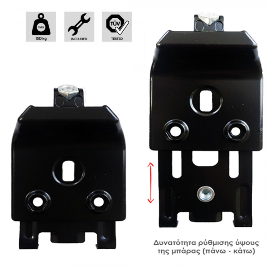 - Περιλαμβάνει: Μπάρες οροφής, άκρα (πόδια), προστατευτικά καπάκια και οδηγίες χρήσης.