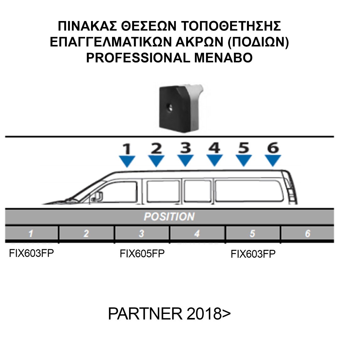 PEUGEOT PARTNER 2008>2018> KIT ΜΕ ΕΠΑΓΓΕΛΜΑΤΙΚΕΣ ΜΠΑΡΕΣ ΟΡΟΦΗΣ ΑΛΟΥΜΙΝΙΟΥ MENABO (8440/MB X 3 - FIX603FP X 2 - FIX605FP Χ 1)