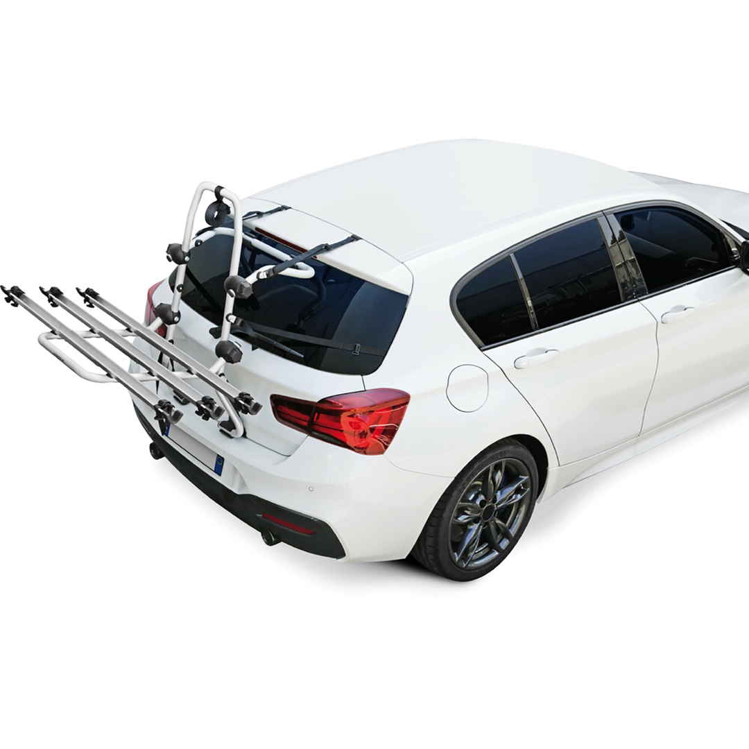 Βάση πορτ μπαγκάζ PYRO-3 για την ασφαλή στήριξη και μεταφορά 3 ποδηλάτων έως 45 Kg της εταιρίας Nordrive. Κατασκευασμένη από σωλήνες αλουμινίου με διάμετρο 30 mm, εξοπλισμένη με μαξιλαράκια στήριξης από μαλακό αντιολισθητικό λάστιχο, συνδέσεις με πλαστική επικάλυψη για την προστασία και αποφυγή γρατζουνιών, ατσάλινα κανάλια στήριξης των ποδηλάτων (ράγες), που ρυθμίζονται κατά μήκος και περιλαμβάνουν συρόμενες ζώνες πρόσδεσης για καλύτερη συγκράτηση και ασφαλή μεταφορά των ποδηλάτων σας. Το πλαίσιο της βάσης ποδηλάτου είναι ρυθμιζόμενο, με ισχυρούς μπροστινούς συνδέσμους για τέλεια προσαρμογή και πρόσφυση σε οποιοδήποτε όχημα. Περιλαμβάνει 6 ανθεκτικούς, ρυθμιζόμενους νάιλον ιμάντες για τοποθέτηση στο πορτ μπαγκάζ του οχήματος. Κατάλληλη για τα περισσότερα ποδήλατα με τριγωνικό πλαίσιο, πλήρως αναδιπλούμενη για να παραμένει κλειστή όταν δεν βρίσκεται σε χρήση. Γρήγορη και εύκολη συναρμολόγηση (χωρίς τη χρήση εργαλείων). Ιδανική για όλα τα πορτ παγκάζ (3d/ 4d sedan/5d htb).