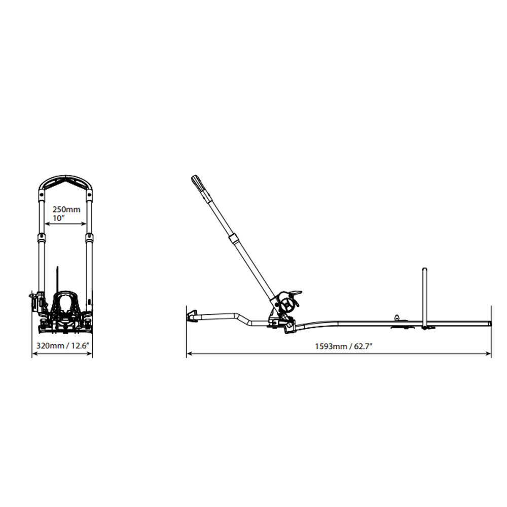 Το πλαίσιο της είναι κατασκευασμένο από ατσάλι υψηλής ποιότητας, διαθέτει ρυθμιζόμενο βραχίονα με 1 ροδέλα για τέλεια προσαρμογή και συγκράτηση επάνω στο σκελετό του ποδηλάτου, αναδιπλούμενο για να παραμένει κλειστή στην οροφή ή να αποθηκεύεται εύκολα χωρίς να πιάνει χώρο, όταν δεν είναι σε χρήση. Η σιδερένια βέργα (ράγα) στο κάτω μέρος της είναι κατάλληλα σχεδιασμένη με υποδοχή (αυλάκι) για να εφαρμόζουν απευθείας οι ρόδες του ποδηλάτου επάνω, ενώ παραμένουν σταθερές κατά τη μεταφορά με τους ιμάντες συγκράτησης (ρυθμιζόμενα λουριά).