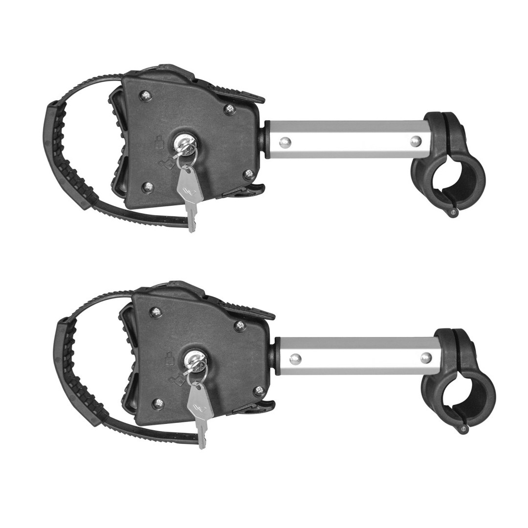 Kit με μπράτσα συγκράτησης για τον σκελετό του ποδηλάτου από την MENABO, 100% ιταλικής προέλευσης και κατασκευής από ατσάλι και πλαστικό, κατάλληλα για τοποθέτηση σε βάσεις ποδηλάτων. Ρυθμιζόμενα με πολλαπλούς περιστρεφόμενους μεντεσέδες, εξοπλισμένα με αντικλεπτικό σύστημα (περιλαμβάνεται κλειδαρια με κλειδί), εξαιρετικά ευέλικτα για να συγκρατούν σταθερά και με ασφάλεια τα ποδήλατα κατά τη μεταφορά τους επάνω στη βάση, προστατεύοντας τα από πιθανή πτώση, κτλ. Εύκολη και γρήγορη προσαρμογή.