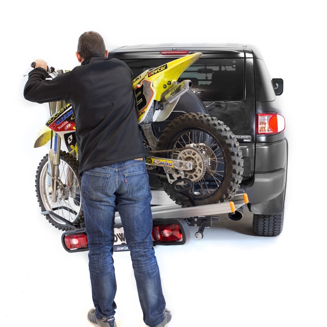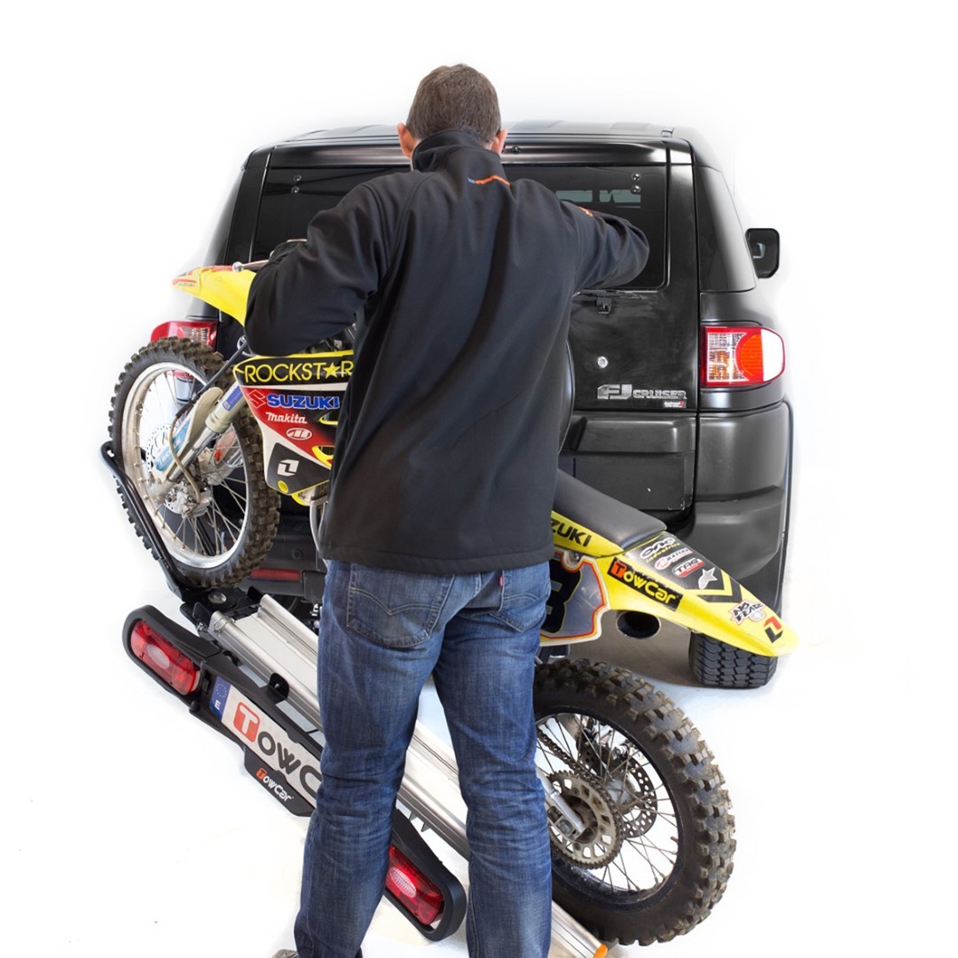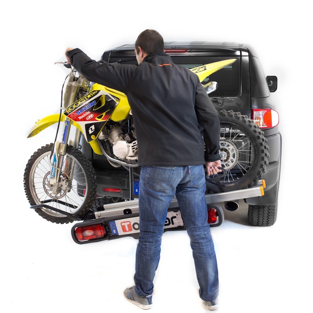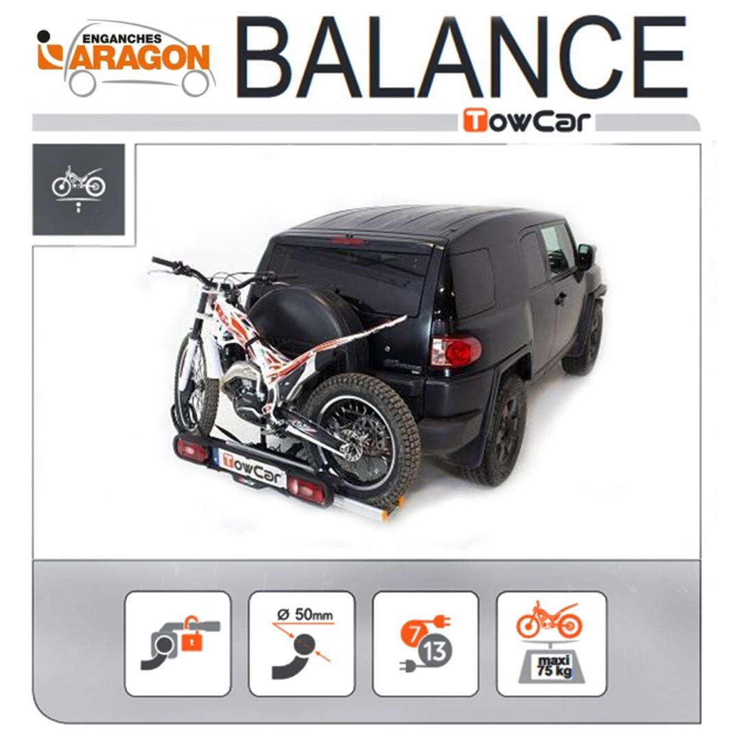 Η βάση μεταφοράς μοτοσυκλέτας κοτσαδόρου TOWCAR BALANCE, ισπανικής προέλευσης, είναι η ιδανική λύση για να μεταφέρετε το δίτροχο όχημα σας με ασφάλεια. Τοποθετείτε τη βάση επάνω στον κοτσαδόρο του αυτοκινήτου με το σύστημα δέσης, φορτώνετε τη μηχανή σας με τη βοήθεια του αποσπώμενου οδηγού και είστε έτοιμοι!