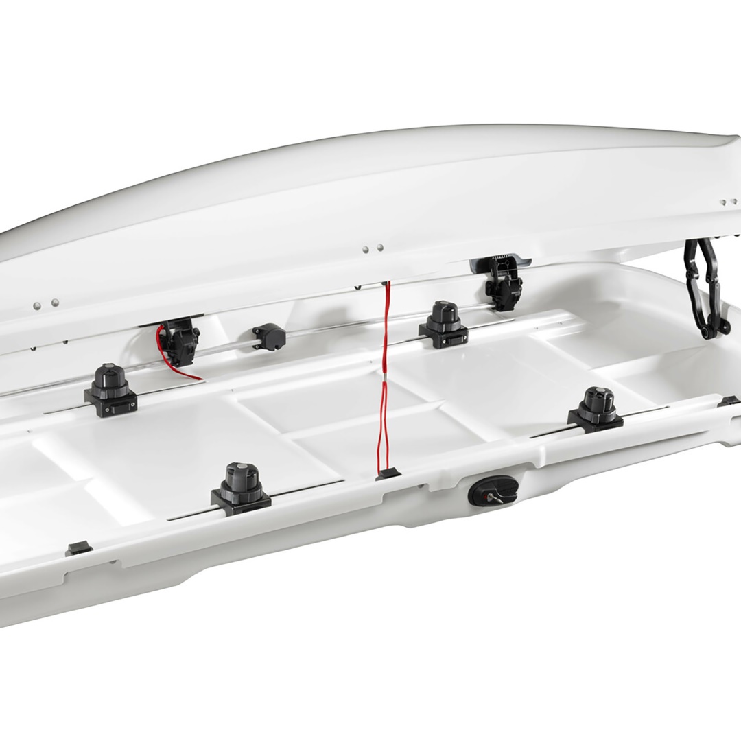 H ελάχιστη προεξοχή της στο πίσω μέρος της οροφής του αυτοκινήτου, δεν αποτελεί πρόβλημα σε περίπτωση που θέλετε να έχετε πρόσβαση στο πορτ μπαγκάζ και δεν εμποδίζει στο να ανοιγοκλείσετε την πόρτα. Στο εσωτερικό της έχει αναμονές για τη στερέωση των ιμάντων πρόσδεσης φορτίου, προσφέροντας extra ασφάλεια στα μεταφερόμενα είδη και μπορείτε να μεταφέρετε μεγάλα, ογκώδη, μακριά, στεγνά ή βρεγμένα αντικείμενα έως max 75 kg.
