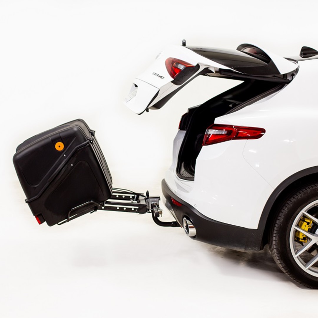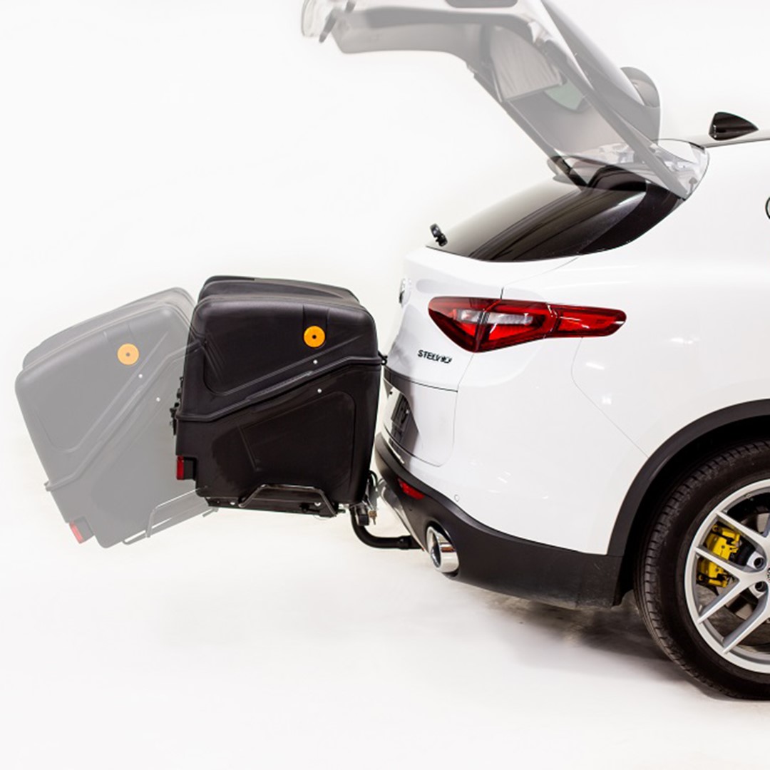 - Συρόμενο πλαίσιο με ανάκλιση για την καλύτερη πρόσβαση στο πορτμπαγκάζ του αυτοκινήτου, ώστε να μην επηρεάζεται η λειτουργία του.