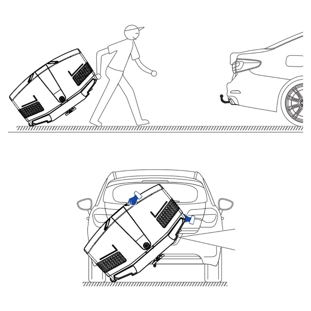 Διαθέτει ενσωματωμένες πλαϊνές βοηθητικές ρόδες και χερούλι για εύκολη και γρήγορη μεταφορά από/προς το όχημα χωρίς να χρειαστεί να τη σηκώσετε, LED φώτα νέας γενιάς κατασκευασμένα και σχεδιασμένα αποκλειστικά από την TowCar, γρίλιες τις οποίες έχετε κατά την αγορά τη δυνατότητα να επιλέξετε αν θα είναι διάτρητες (ανοικτές) ή κλειστές (ανάλογα τις ανάγκες σας), λαβές στο πάνω μέρος για καλύτερο χειρισμό της μπαγκαζιέρας κατά το άνοιγμα/κλείσιμο και μοχλό με σύστημα εμπλοκής/απεμπλοκής για τη τοποθέτηση της πάνω στον κοτσαδόρο.