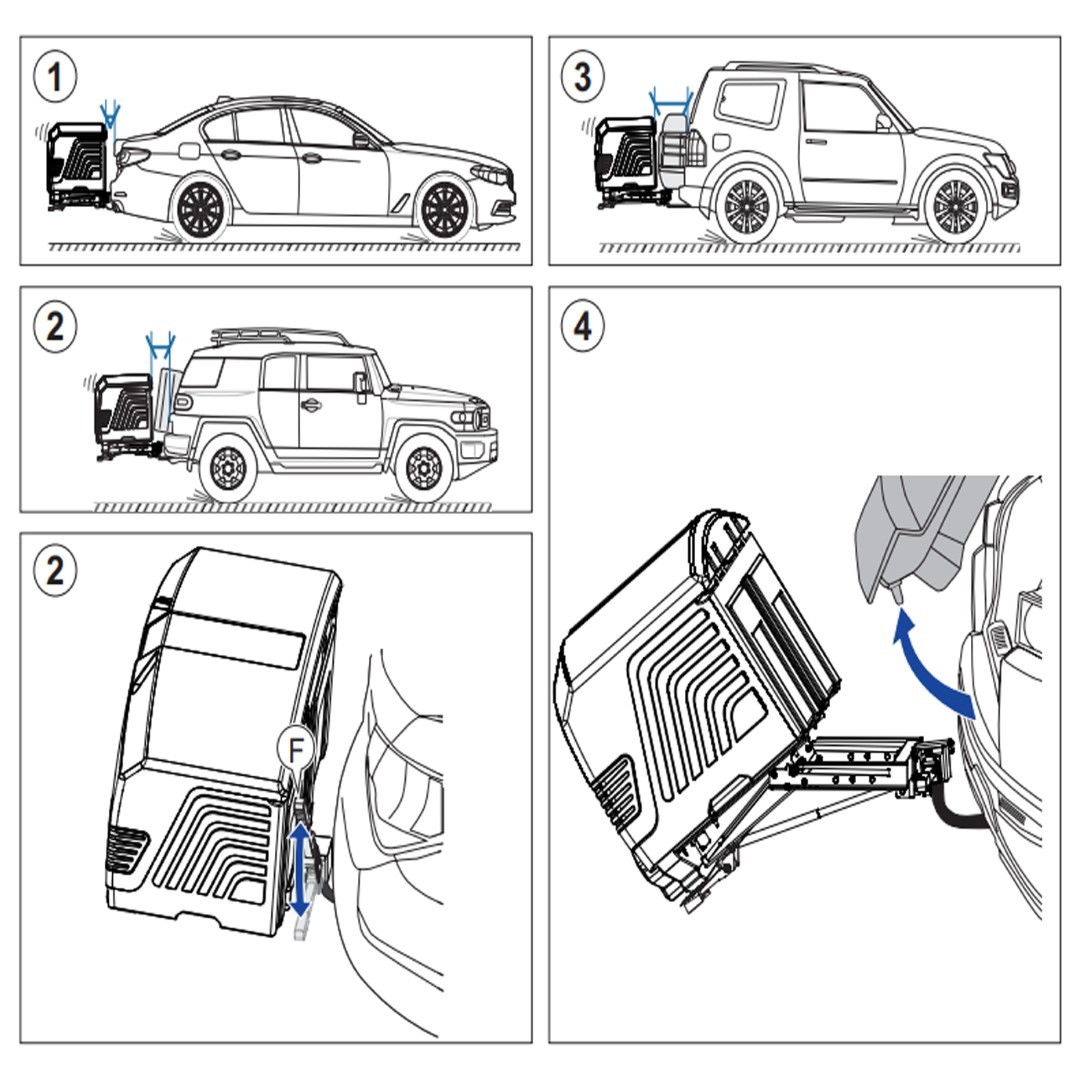 Θέση 2: Κατάλληλη για να εφαρμόζει σε οχήματα που έχουν κανονικού μεγέθους ρεζέρβα στο πίσω μέρος του οχήματος και δέχεται μέγιστο βάρος φορτίου 40 kg.