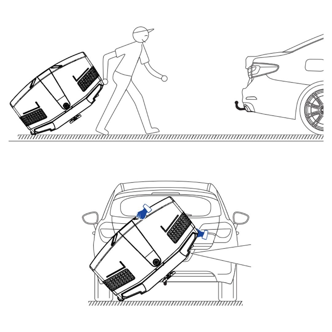 Διαθέτει ενσωματωμένες πλαϊνές βοηθητικές ρόδες και χερούλι για εύκολη και γρήγορη μεταφορά από/προς το όχημα χωρίς να χρειαστεί να τη σηκώσετε, LED φώτα νέας γενιάς κατασκευασμένα και σχεδιασμένα αποκλειστικά από την TowCar, γρίλιες τις οποίες έχετε κατά την αγορά τη δυνατότητα να επιλέξετε αν θα είναι διάτρητες (ανοικτές) ή κλειστές (ανάλογα τις ανάγκες σας), λαβές στο πάνω μέρος για καλύτερο χειρισμό της μπαγκαζιέρας κατά το άνοιγμα/κλείσιμο και μοχλό με σύστημα εμπλοκής/απεμπλοκής για τη τοποθέτηση της πάνω στον κοτσαδόρο.