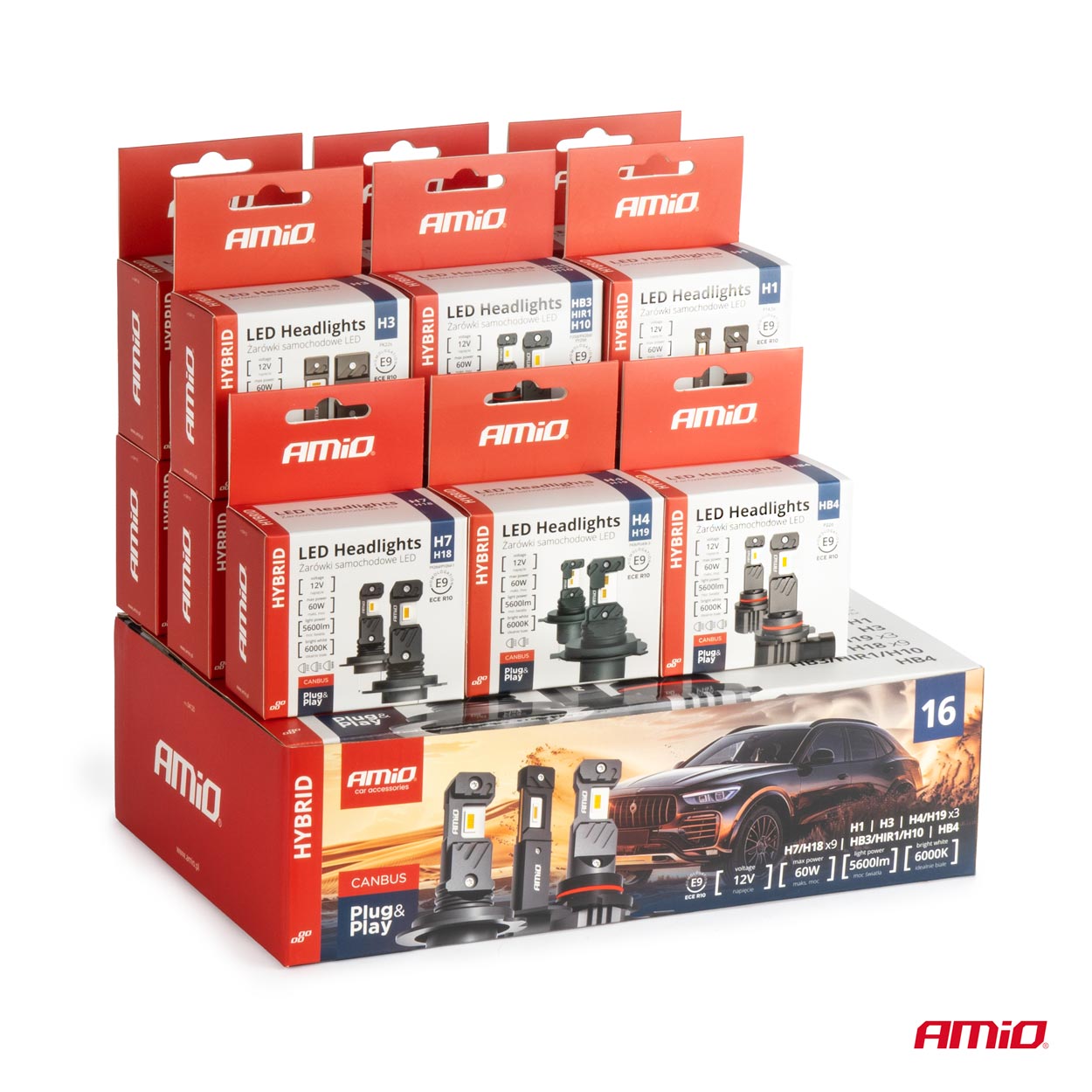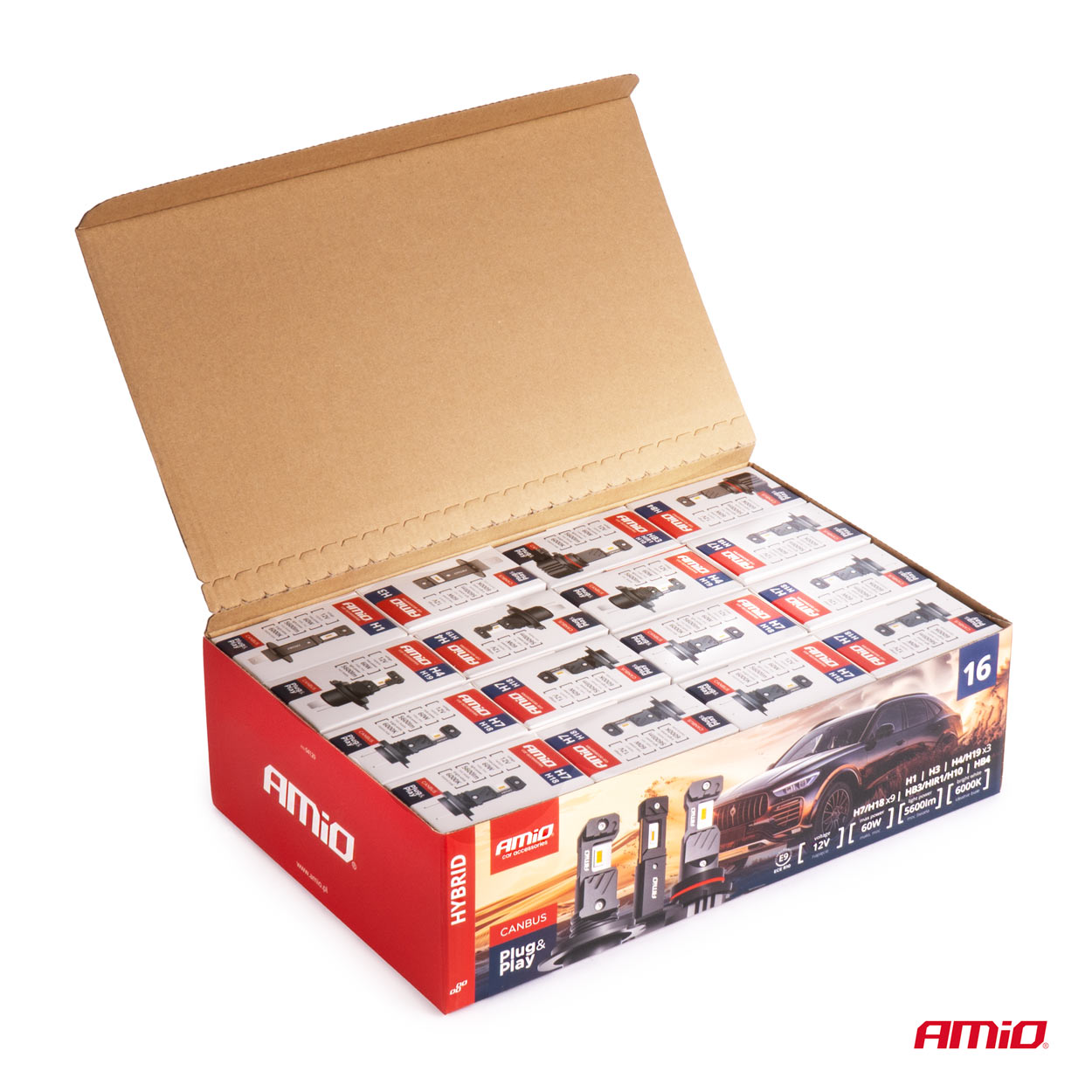 ΛΑΜΠΕΣ LED H1/H3/H4(x3)/H7(x9)/HB3/HB4 12V 60W 6.000K 5.600lm LED CAN-BUS HYBRID SERIES AMIO - ΣΕΤ 16 ΤΕΜ.