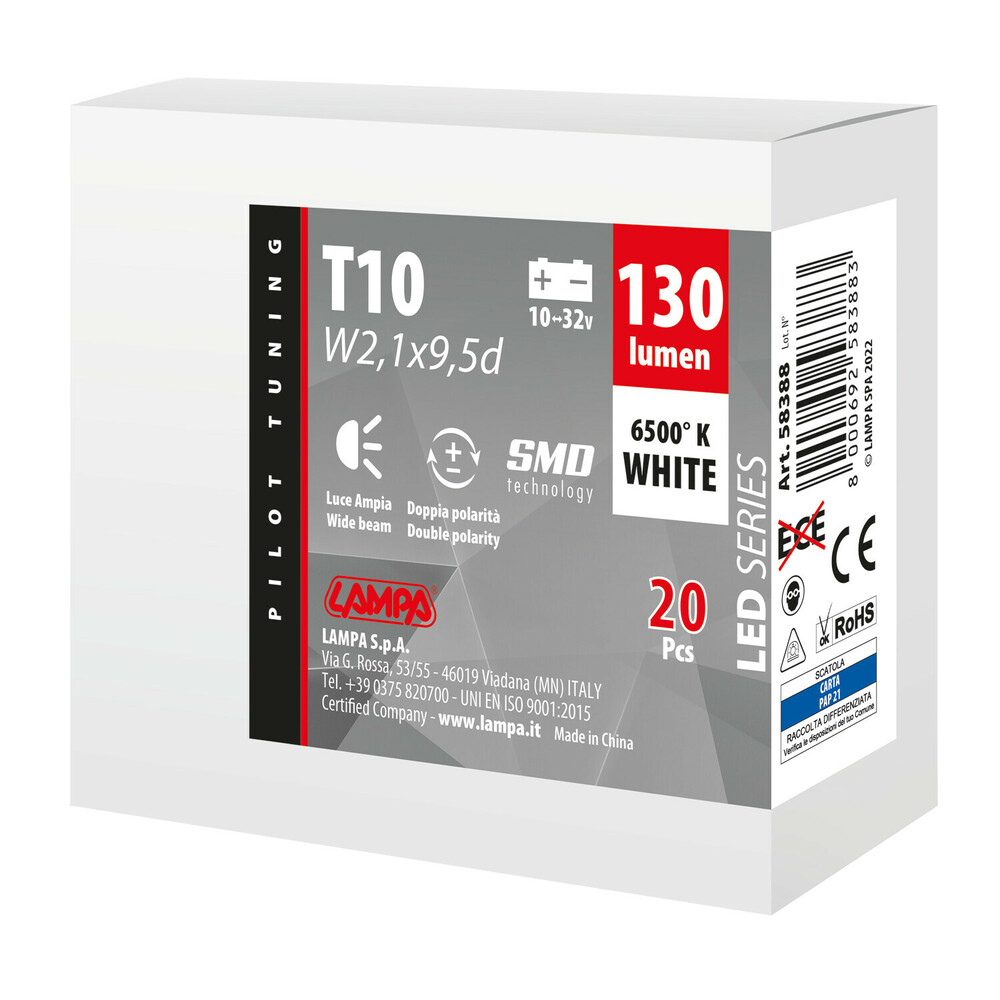 Τ10 10-32V w2,1x95d 1SMDx1CHIP LED 130lm can bus διάθλασης λευκό σε κουτί, από την εταιρεία LAMPA, ιταλικής προέλευσης.