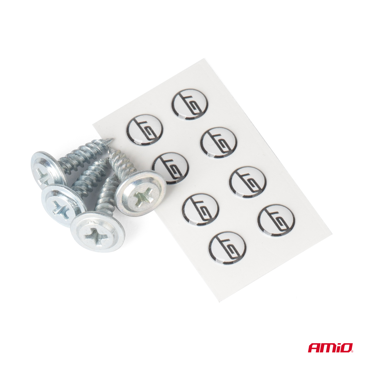 Το σετ περιλαμβάνει: 2 πινακίδες κυκλοφορίας, 4 βίδες στερέωσης, 8 αντιολισθητικά αυτοκόλλητα, οδηγίες τοποθέτησης.
