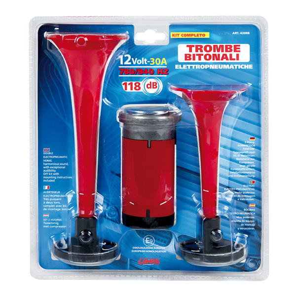 ΔΙΦΩΝΗ ΚΟΡΝΑ ΑΕΡΟΣ 12V - Διάμετρος: 66 mm. - Διπλή ηλεκτροπνευματική κόρνα. - Εγκεκριμένο. Χαρακτηριστικά: - 12V - 30A - 118 dB - 780/840 Hz