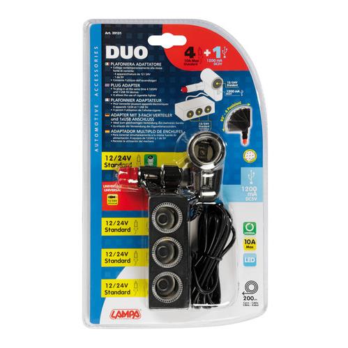 ΑΝΤΑΠΤΟΡΑΣ ΑΝΑΠΤΗΡΑ 4 ΘΕΣΕΩΝ+USB 10A ΜΕ ΚΑΛΩΔΙΟ 200cm 12/24V DUO 4in1