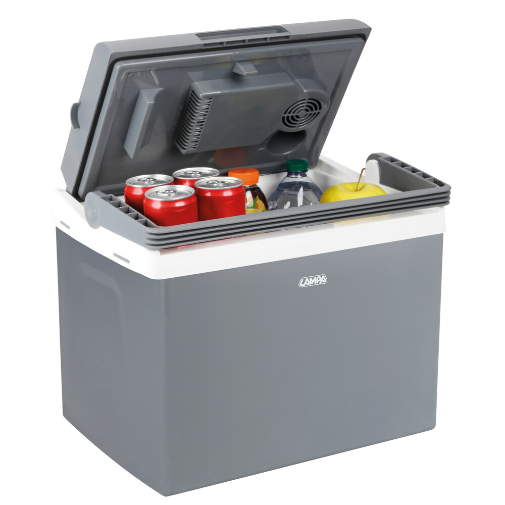 Ψυγείο αυτοκινήτου θερμοηλεκτρικό 25lt σε γκρι/λευκό χρώμα από την εταιρεία LAMPA, ιταλικής προέλευσης.