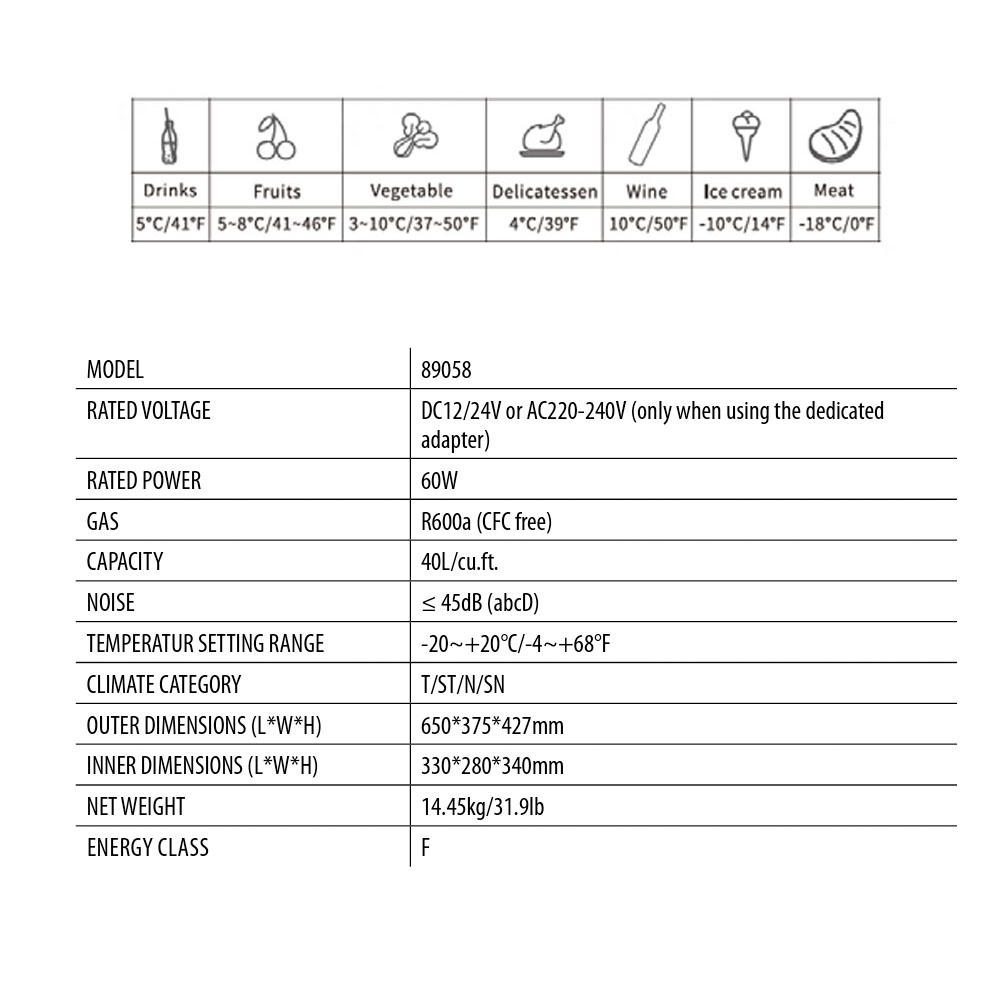 Ψυγείο/καταψύκτης φορητός με συμπιεστή/θερμοστάτη και ψηφιακή οθόνη 40lt FC-40 από την εταιρεία LAMPA, ιταλικής προέλευσης. Με ενσωματωμένο φως LED και ποτηροθήκη.
