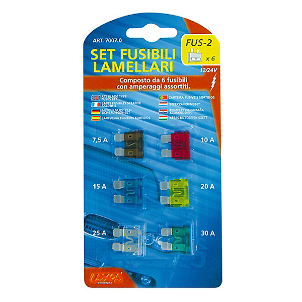 Ασφάλειες για μοτο σε καρτέλα (6 τεμαχίων). Περιέχει 1x7,5 -1x10- 1x15 -1x20 -1x25 -1x30 Amp.