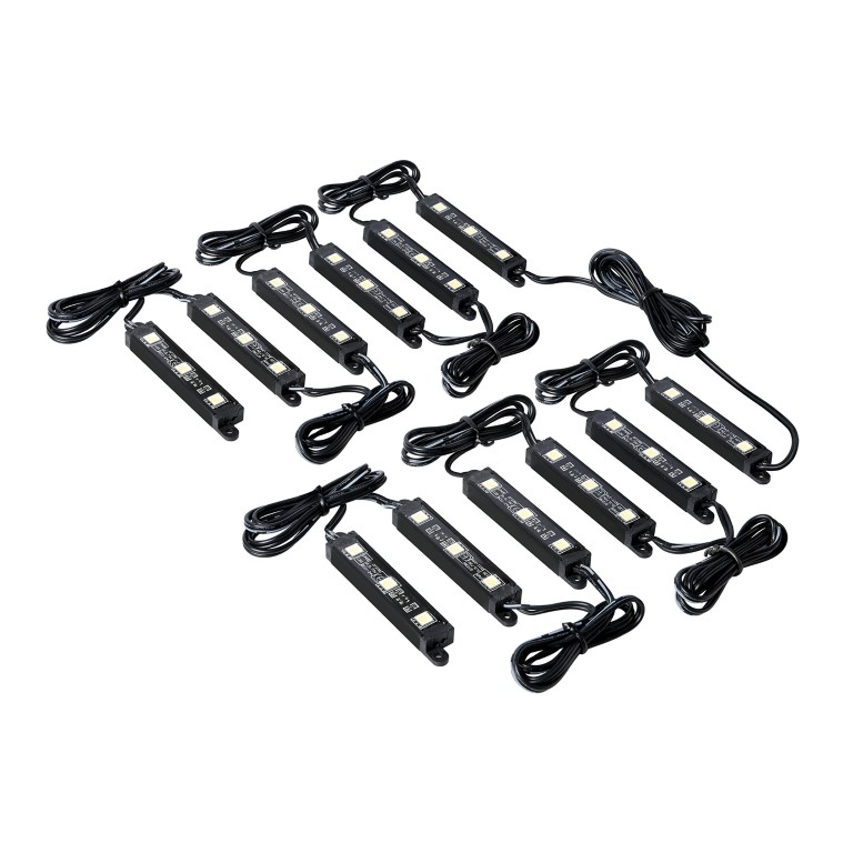 Σετ εσωτερικού/εξωτερικού διακοσμητικού φωτισμού, σε λευκό χρώμα, μήκους 106 cm, το οποίο αποτελείται από 12 ενιαίες κεντρικές μονάδες, που ενώνονται μεταξύ τους με καλωδίωση και έχουν 3 HYPER LED (ανά μονάδα), SMD τεχνολογίας με ελαφριά και μικρά τσίπ επενδεδυμένα από εποξική ρητίνη, παρέχοντας υψηλή φωτεινότητα και χαμηλή κατανάλωση ενέργειας. Το σετ είναι αδιάβροχο και διαθέτει διπλό σύστημα στερέωσης, είτε με τις αυτοκόλλητες βάσεις που διαθέτουν είτε με βίδωμα στο αμάξωμα. Είναι κατάλληλα για τοποθέτηση εσωτερικά και εξωτερικά για την διακόσμηση του αυτοκινήτου. Εύκολη και γρήγορη τοποθέτηση.