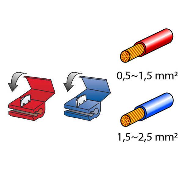 ΚΛΕΦΤΗΣ ΡΕΥΜΑΤΟΣ ΑΠΟ ΚΑΛΩΔΙΟ (ΚΟΚΚΙΝΟ 0,5-1,5 mm / ΜΠΛΕ 1,5-2,5 mm) - 10 ΤΕΜ.