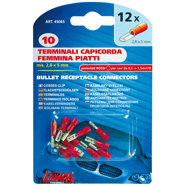 Θηλυκά φισάκια 2,8x0,5mm 12 τεμαχίων σε κόκκινο χρώμα.