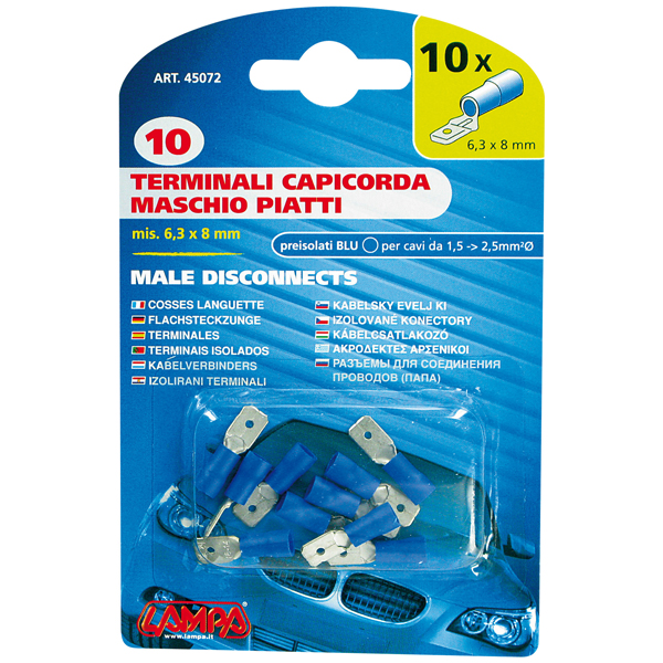 Αρσενικά φισάκια 6,3x0,8mm 10 τεμαχίων σε μπλε χρώμα.