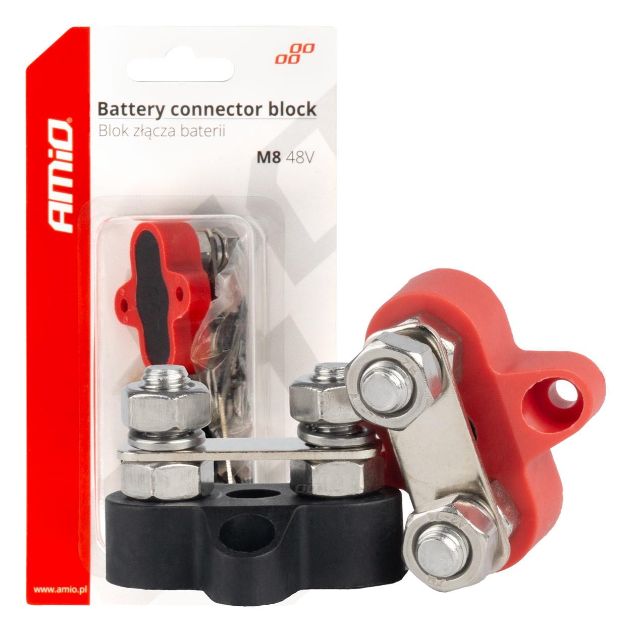 ΤΕΡΜΑΤΙΚΟ ΑΚΡΟΔΕΚΤΩΝ ΔΙΠΛΟ M8 2 ΠΟΛΩΝ 48V AMIO - 1 Τεμ. Τερματικό ακροδεκτών διπλό Μ8 2 πόλων, από την εταιρεία ΑΜΙΟ, πολωνικής προέλευσης. 48V Συσκευασία 1 τεμαχίου
