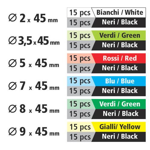 ΘΕΡΜΟΣΥΣΤΕΛΛΟΜΕΝΑ ΚΑΛΥΜΜΑΤΑ ΚΑΛΩΔΙΩΝ 180ΤΕΜ. - Μήκος: 45 mm. - Ποικιλία χρωμάτων. Συσκευασία 180 τεμαχίων