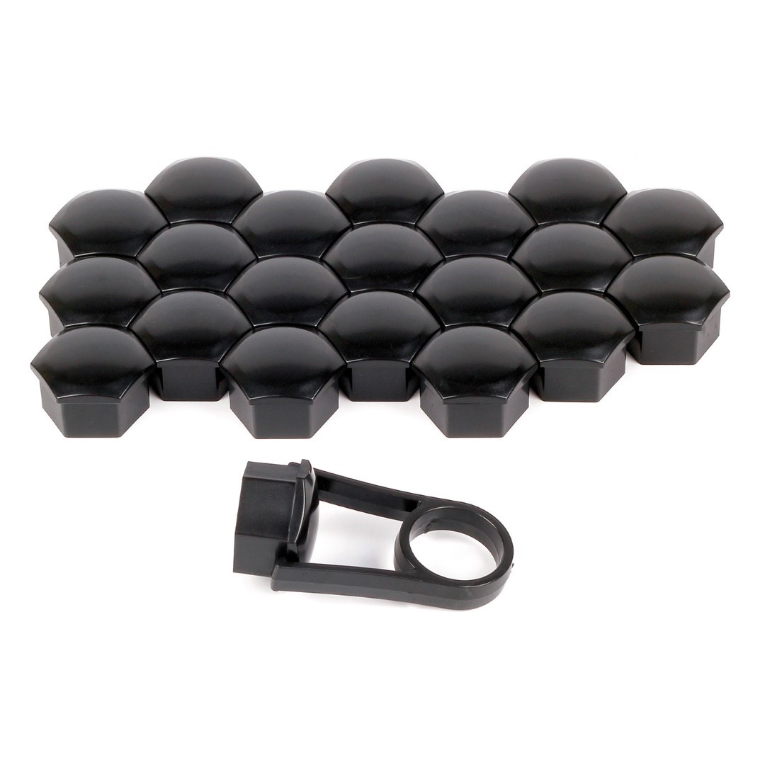 Καπάκια για μπουλόνια ή παξιμάδια με διάμετρο κεφαλής 19 mm του αυτοκινήτου σας σε μαύρο χρώμα και σχήμα εξαγώνου, κατασκευασμένα από ποιότικο κι ανθεκτικό ABS πλαστικό, κατάλληλα για τη διακόσμηση των τροχών σας. Η συσκευασία περιλαμβάνει 20 τεμάχια και διαθέτει ειδική τσιμπίδα για τη τοποθέτησή τους. Εύκολη και γρήγορη χρήση.