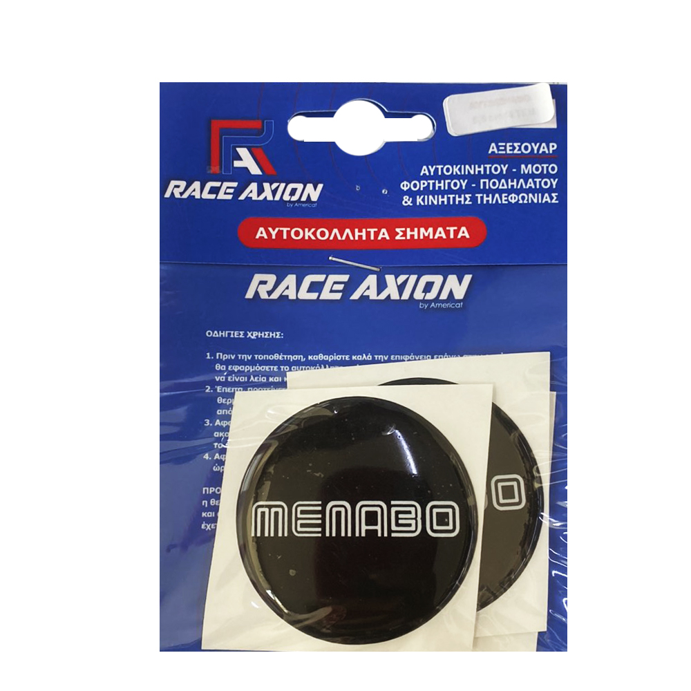 Αυτοκόλλητα σήματα ζαντών MENABO με επικάλυψη σμάλτου για πρόσθετη σκληρότητα υλικού, κατάλληλα για τοποθέτηση στο κέντρο των ζαντών ή στα τάσια των τροχών του αυτοκινήτου για την αντικατάσταση των ήδη υπαρχόντων σημάτων σε περίπτωση φθοράς από τον ήλιο, κλοπής, κτλ., καθώς και για την διακόσμηση του εξωτερικού του οχήματος. Εύκολη και γρήγορη χρήση/τοποθέτηση.