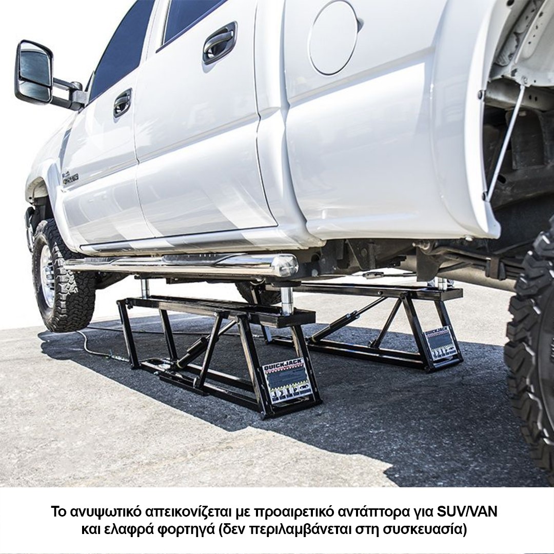 Το φορητό ανυψωτικό BL-7000EXT QuickJack™ από την εταιρία Bend Pak, αμερικάνικης προέλευσης, είναι το απόλυτο εργαλείο βαρέως τύπου για ερασιτέχνες που θέλουν να κάνουν πολλά, σε μικρό χώρο. Σηκώνει ακόμη και SUV και ελαφρά φορτηγά! Κάντε το χόμπι σας ταχύτερα, ασφαλέστερα και πιο εύκολα από ποτέ.