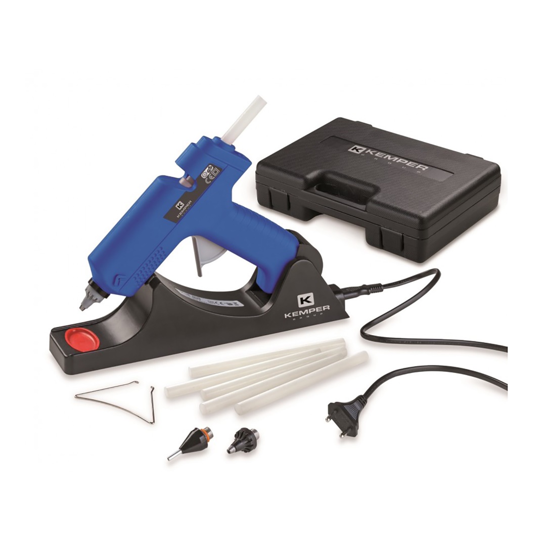 Πιστόλι Θερμικής σιλικόνης ασύρματο με επαναφορτιζόμενη βάση ιταλικής προέλευσης από την εταιρία KEMPER. Η συσκευασία περιλαμβάνει 3 μύτες διαφορετικών διαστάσεων (ακροφύσια) και 6 ράβδους σιλικόνης 150 x Ø 12 mm. Χρόνος προθέρμανσης 3-5 λεπτά και με ροή κόλλας 22-30 g / λεπτό. Ιδανικό για οικιακή και επαγγελματική χρήση (εργασίες διακόσμησης, επισκευές, ξυλουργική, κόλληση καλωδίων συναγερμών κλπ). Με βελτιωμένη μεγάλη σκανδάλη για απόλυτο έλεγχο ροής. Διατίθεται σε βαλιτσάκι πλαστικό για εύκολη αποθήκευση και μεταφορά.