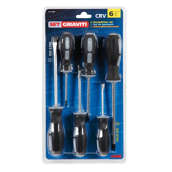 Σετ με κατσαβίδια διαφόρων μεγεθών και διαστάσεων ιταλικής προέλευσης από την εταιρία Lampa. Η συσκευασία περιλαμβάνει 6 τεμάχια με τις παρακάτω διαστάσεις: