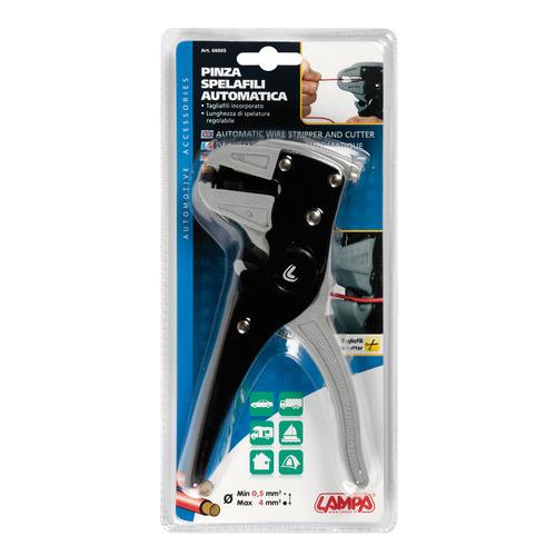 Εργαλείο χειρός για να κόψετε και να απογυμνώσετε αποτελεσματικά καλώδια και φισάκια, ιταλικής προέλευσης από την εταιρία Lampa. Διαθέτει αυτόματη επαναφορά και δ υνατότητα ρύθμισης μήκους (min 0,5 mm2- max 4mm2).