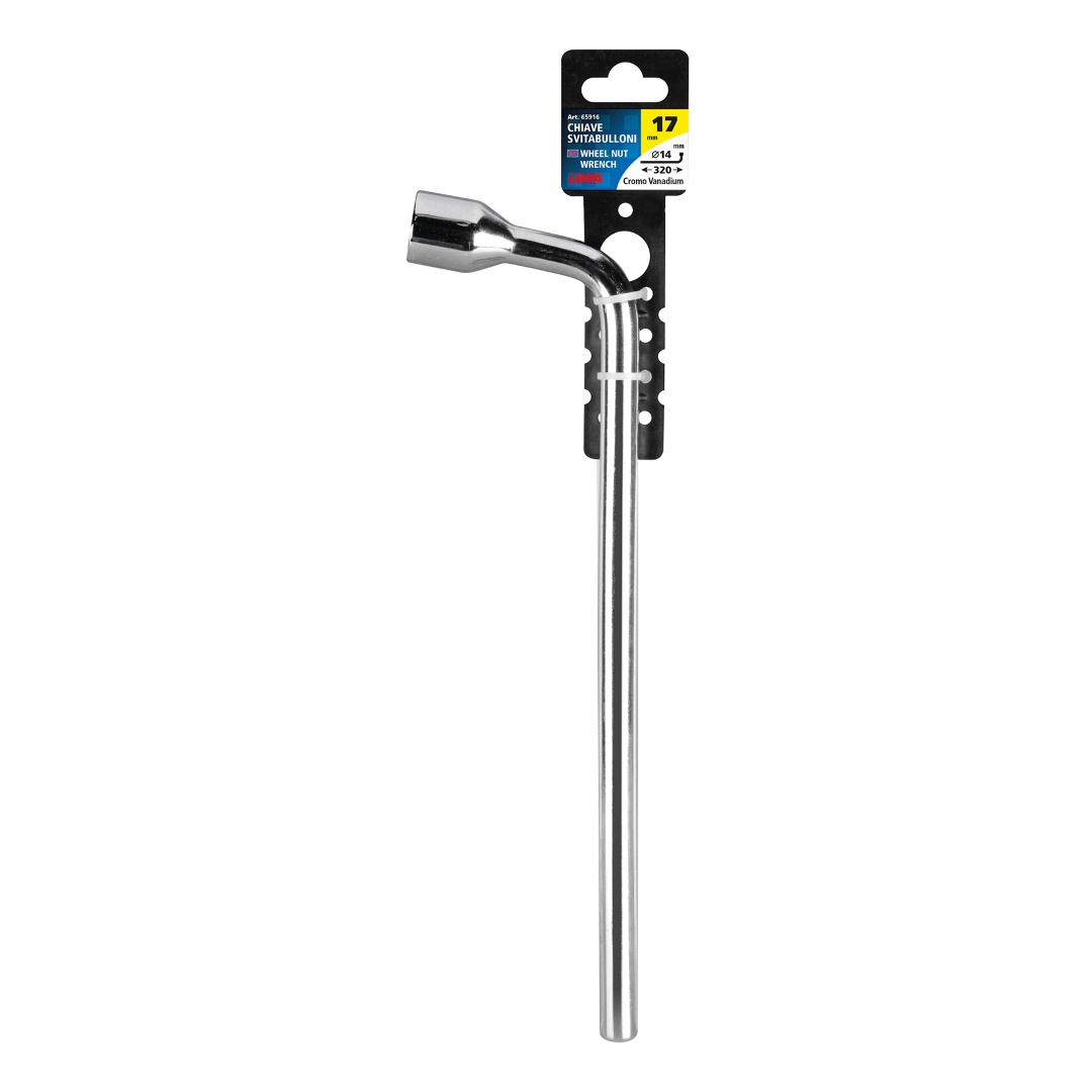Μπουλονόκλειδο για εξάγωνο μπουλόνι με 17 mm κεφαλή, κατασκευασμένο από χάλυβα με επίστρωση βαναδίου (vanadio/ μεγάλη ανθεκτικότητα στη διάβρωση, καθώς δεν προσβάλλεται από καυστικά αλκάλια, υδροχλωρικό οξύ και θειικό οξύ , δεν αντιδρά με το οξυγόνο της ατμόσφαιρας ούτε προσβάλλεται από το θαλάσσιο νερό), ιταλικής προέλευσης από την εταιρία LAMPA. Κατάλληλο εργαλείο χειρός για την τοποθέτηση/αφαίρεση των μπουλονιών στους τροχούς του οχήματός σας.