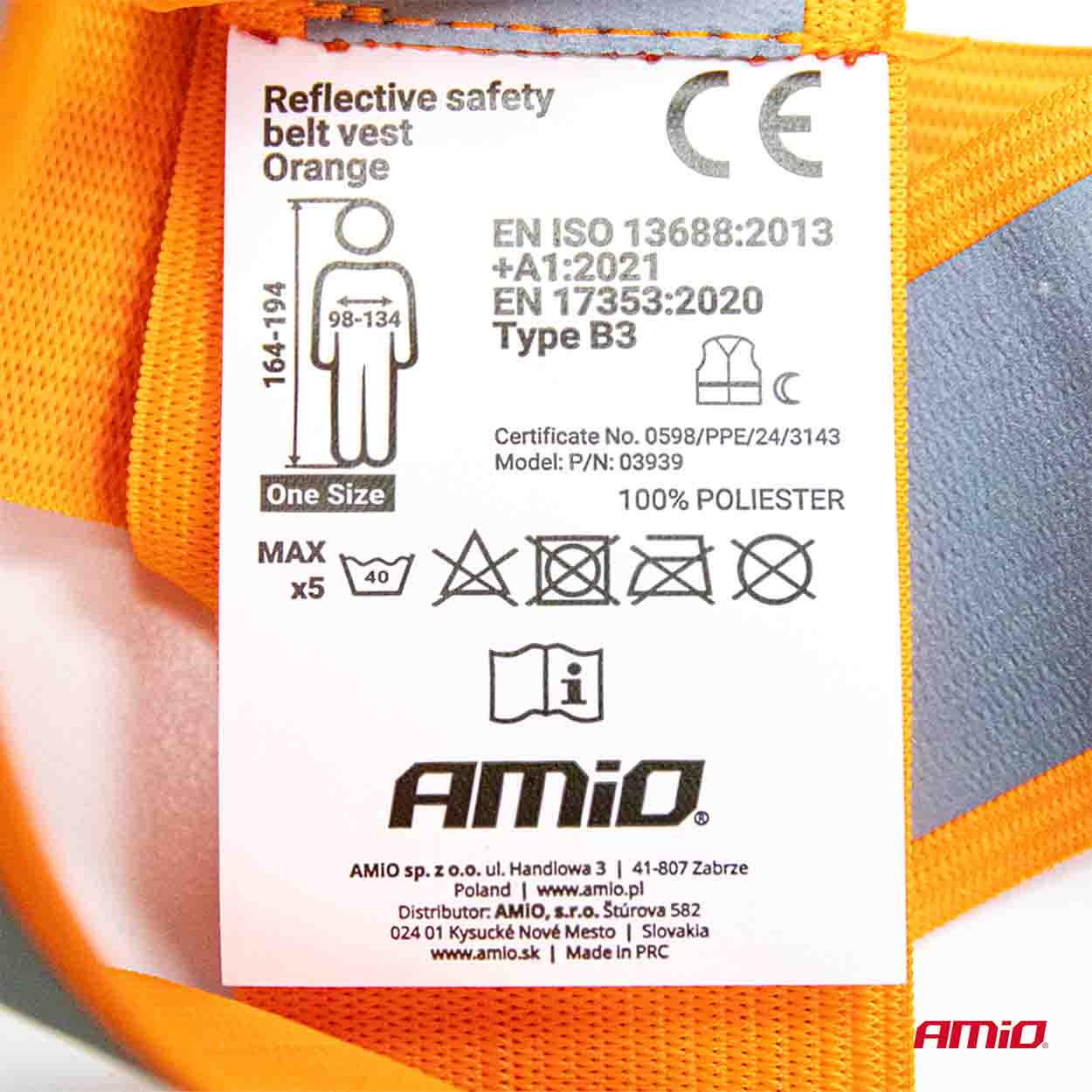 ΖΩΝΗ ΑΣΦΑΛΕΙΑΣ ΑΝΑΚΛΑΣΤΙΚΗ ΜΕ ΧΙΑΣΤΙ ΤΙΡΑΝΤΕΣ ΠΟΡΤΟΚΑΛΙ (ΦΩΣΦΟΡΙΖΕ/ΠΟΛΥΕΣΤΕΡΙΚΟ) AMIO - 1 ΤΕΜ.