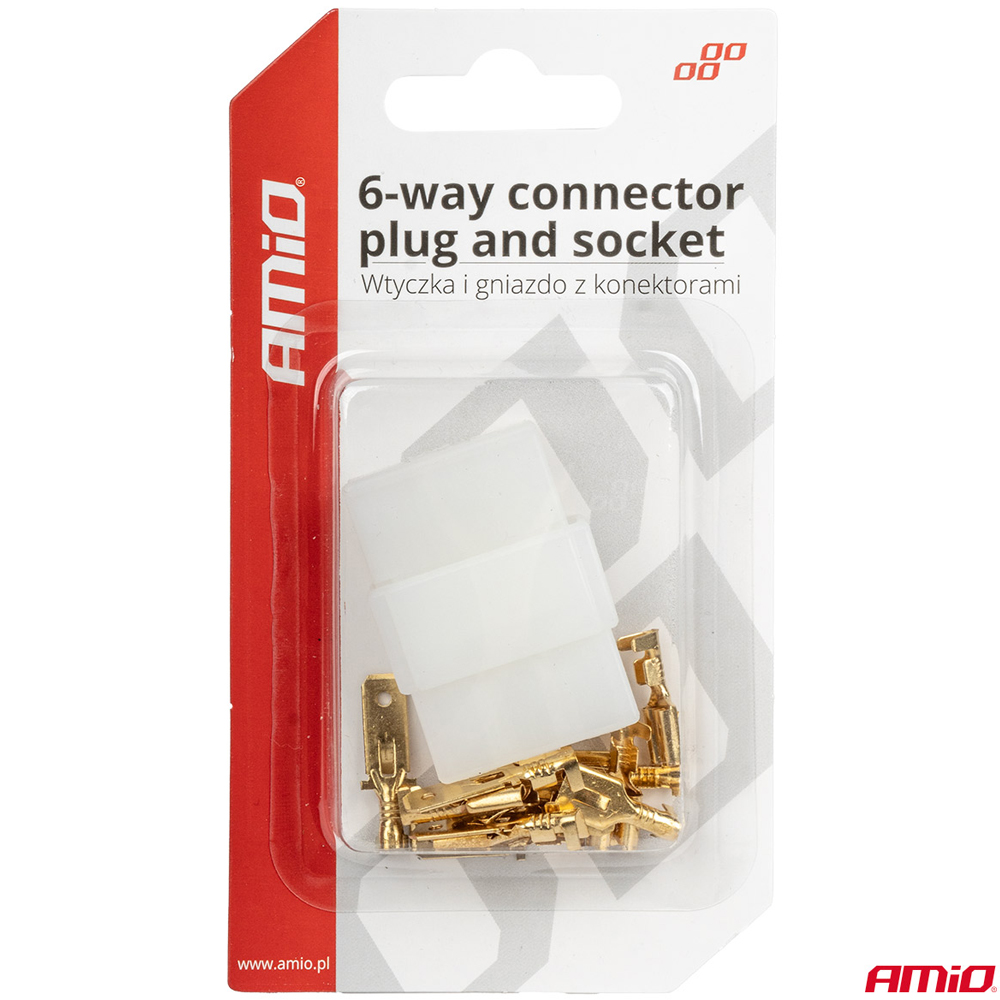 Φίσα σύνδεσης καλωδίων 6 υποδοχών με πλαστικό κούμπωμα, από την εταιρεία ΑΜΙΟ, πολωνικής προέλευσης.