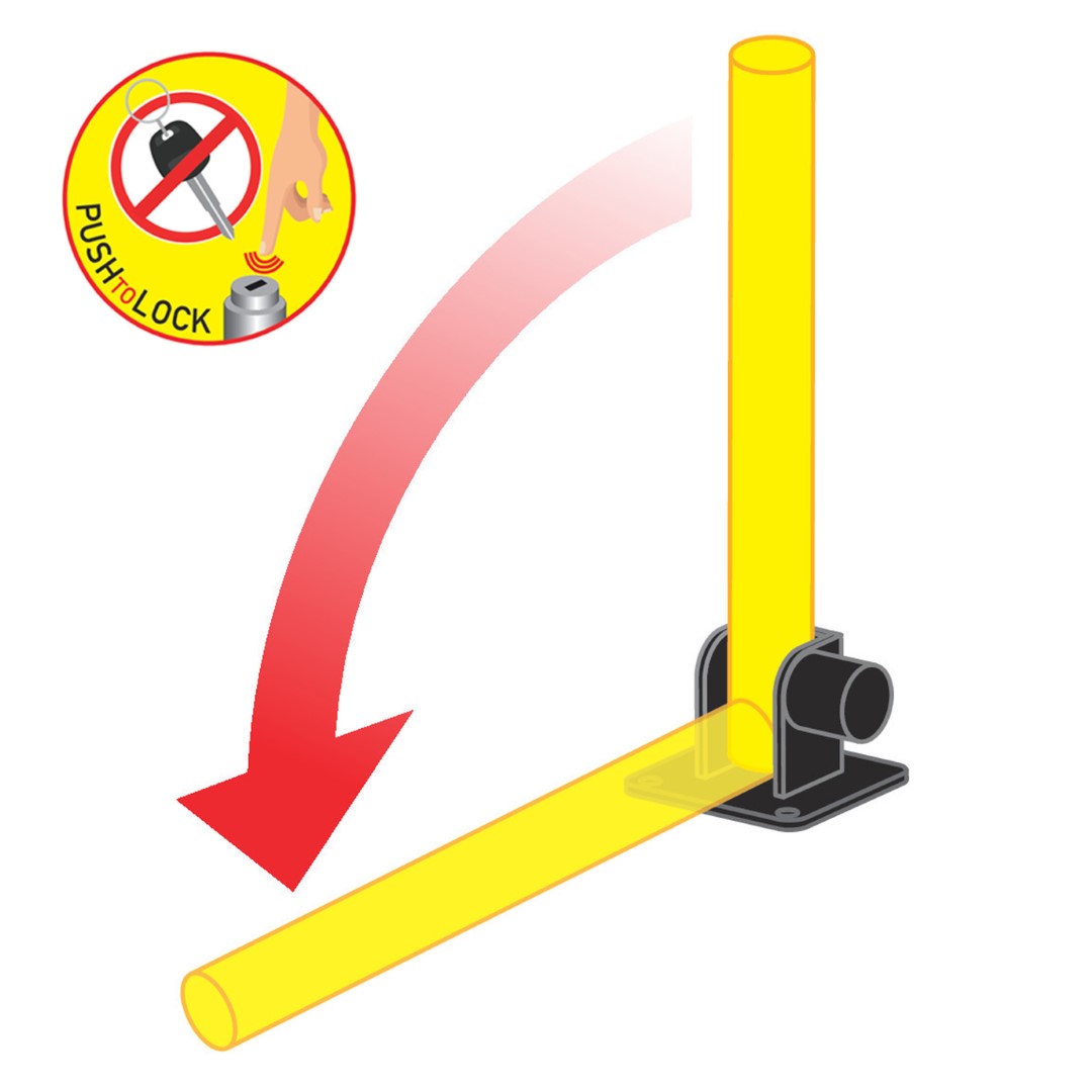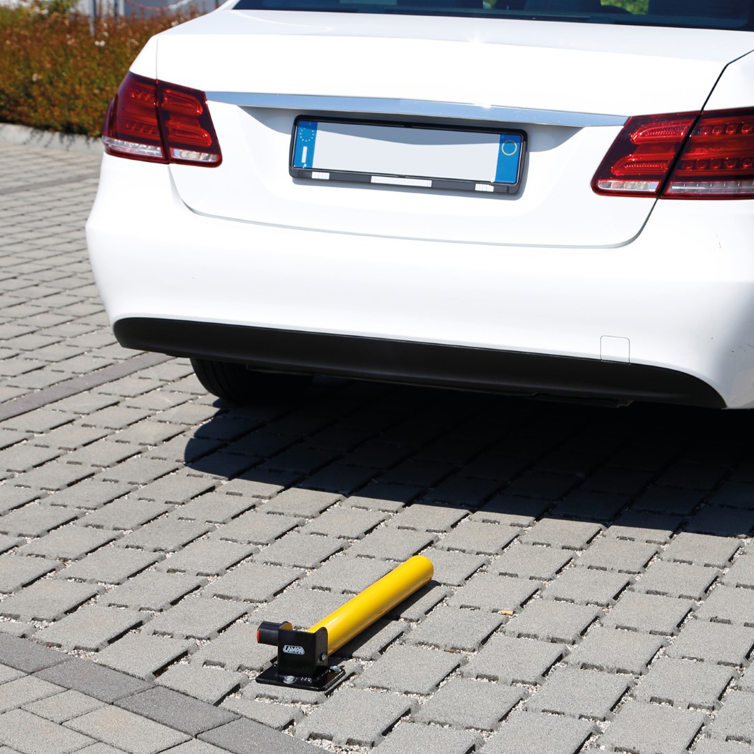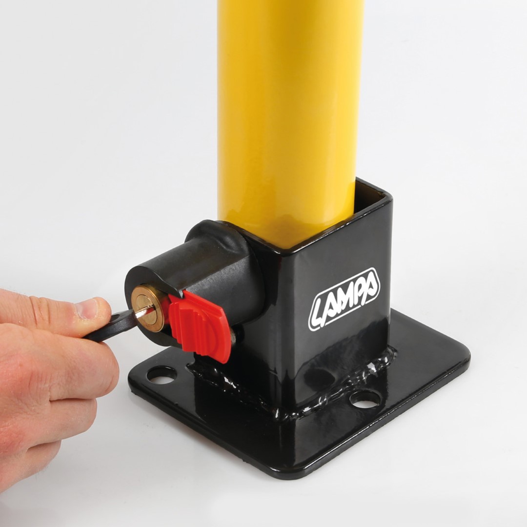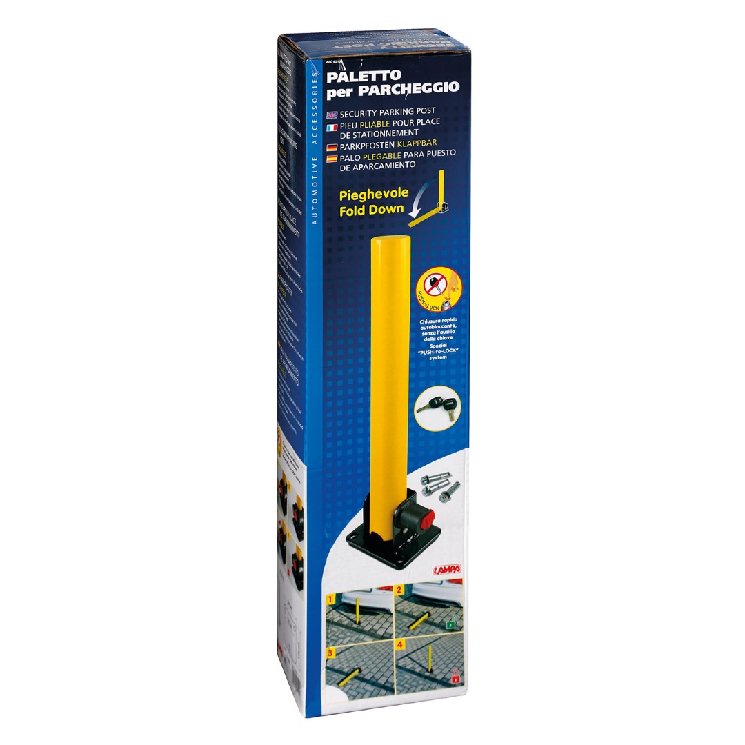 Μεταλλικός αναδιπλούμενος στύλος από την εταιρία LAMPA, ιταλικής προέλευσης, σε κίτρινο χρώμα για να γίνεται εύκολα αντιληπτός από διερχόμενους οδηγούς και πεζούς, ο οποίος χρησιμοποιείται ως μπάρα αποτροπής στάθμευσης (parking) οχημάτων, κατάλληλος για να εξασφαλίζετε πως κάποιο αυτοκίνητο ή μηχανή δεν θα καταπατήσει τον ιδιωτικό σας χώρο και δε θα πραγματοποιήσει στάση ή στάθμευση. Διαθέτει βάση για να μπορείτε να τοποθετήσετε το προϊόν στο δάπεδο, 3 ειδικές βίδες για στήριξη σε τσιμέντο, π.χ. πεζοδρόμιο, οδόστρωμα, κ.ά. και σύστημα αυτόματου κλειδώματος push to lock (πιέζοντας απλά τη κλειδαριά προς τα μέσα με το δάκτυλο, χωρίς την χρήση κλειδιού) με 2 κλειδιά και προστατευτικό κάλυμμα κλειδαριάς, που ανοιγοκλείνει. Ο στύλος έχει τη δυνατότητα αναδίπλωσης για να ανεβαίνει και να κατεβαίνει, ώστε να μπορείτε να παρκάρετε ή ξεπαρκάρετε το αυτοκίνητό σας, περνώντας από πάνω του. Εύκολη και γρήγορη χρήση. Η ιδανική λύση για να οριοθετείτε τον προσωπικό σας χώρο!