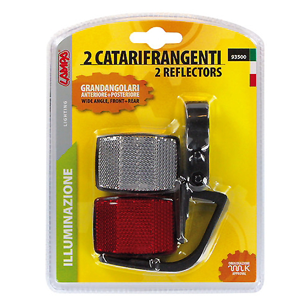 Aνακλαστήρες ποδηλάτου γωνιακοί εμπρός-πίσω σε κόκκινο και λευκό χρώμα αντίστοιχα με βάσεις τοποθέτησης.