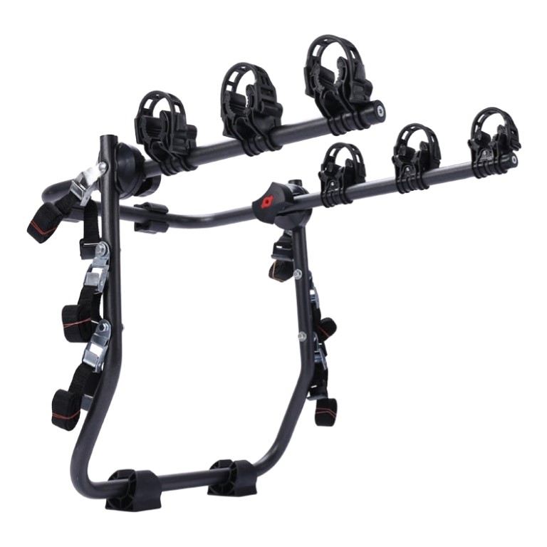 Βάση ποδηλάτου πορτ μπαγκάζ HOLIDAY της K39, ιταλικής προέλευσης, για τη μεταφορά 3 ποδηλάτων. Διαθέτει 6 δέστρες για την τοποθέτηση και συγκράτηση κάθε ποδηλάτου, ενσωματωμένους νάυλον ιμάντες δέσης και τοποθέτησης στο πορτ μπαγκάζ του αυτοκινήτου και ρυθμιζόμενο πλαίσιο με ροδέλες για καλύτερη εφαρμογή. Διαθέτει προστατευτικά μαξιλαράκια από μαλακό αντιολισθητικό λάστιχο σε όλα τα σημεία επαφής της για τη προστασία και την αποφυγή από γρατζουνιές ή φθορές. Πλήρως αναδιπλούμενη για να παραμένει κλειστεί και να μην περιορίζει την ορατότητα του οδηγού κατά τη μετακίνηση, όταν δεν είναι σε χρήση.