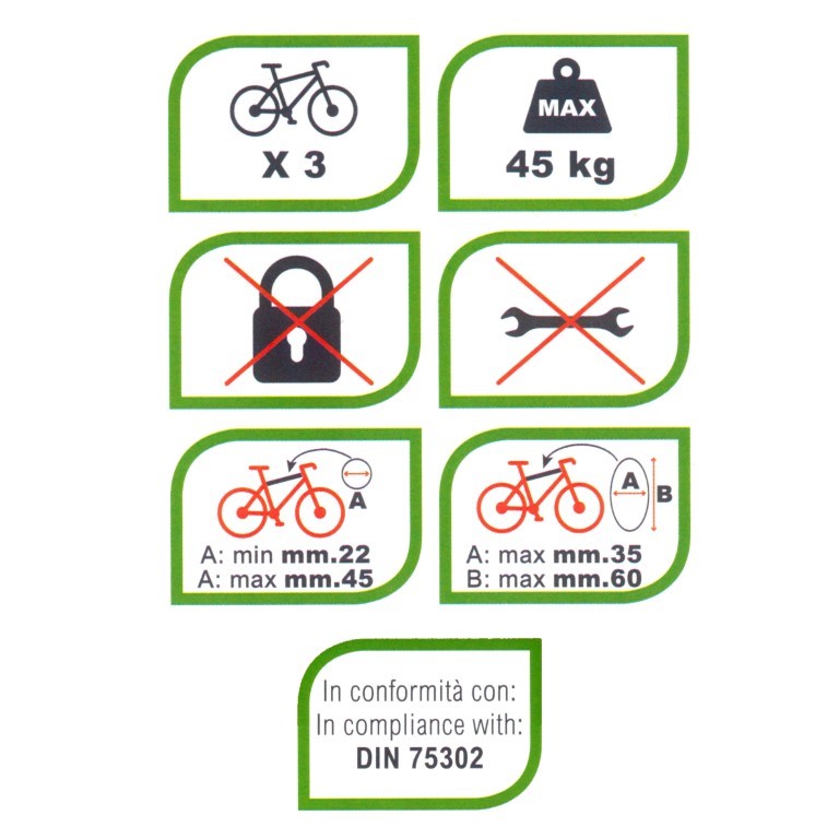 Συμβατή με σκελετούς ποδηλάτου, οι οποίοι έχουν διάμετρο min: 22 mm. / max: 45 mm. (στρογγυλή σωλήνα) ή διάμετρο max: 35 mm. και ύψος διαμέτρου max: 60 mm. (οβάλ σωλήνα), καθώς επίσης και με τα περισσότερα μεγέθη ελαστικών.