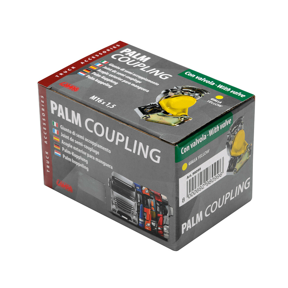 ΧΟΥΦΤΑ ΑΕΡΟΣ (ΠΑΛΜ ΖΕΥΞΗΣ) ΜΕ ΒΑΛΒΙΔΑ M16x1,5 ΚΙΤΡΙΝΗ PALM COUPLING LAMPA - 1 TEM. Χούφτα αέρος με βαλβίδα Μ16X1,5 κίτρινη PALM COUPLING από την εταιρεία LAMPA, ιταλικής προέλευσης. -Διαστάσεις: Μ16X1,5. Συσκευασία 1 τεμαχίου