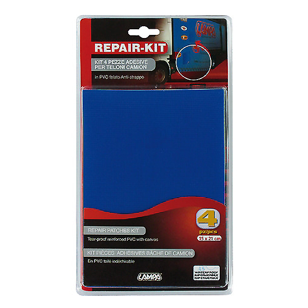 Σετ 4 μπαλώματα επισκευής τέντας φορτηγού (Μπλε) κατασκευασμένα από PVC υλικό.