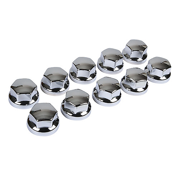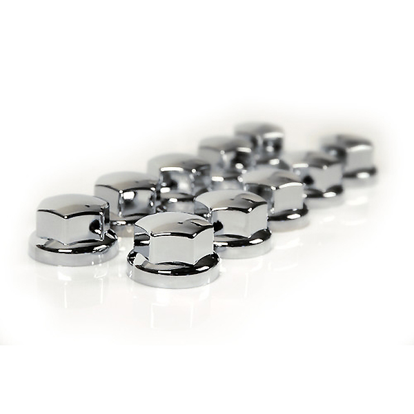 Διακοσμητικές τάπες για μπουλόνια φορτηγού κοντές πλαστικές (Χρωμίου). Εύκολες στην τοποθέτηση. Μήκος 38mm. Χάρη στα ειδικά εσωτερικά κλιπ, μπορούν να στερεωθούν σε μπουλόνια διαμέτρου Ø 32 και 33 mm