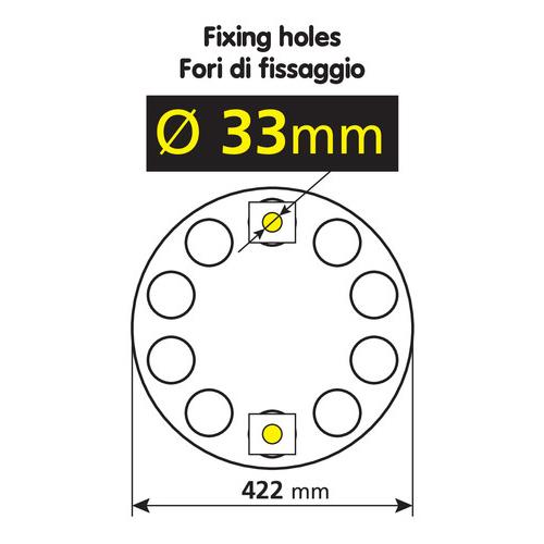 Κατασκευασμένο από ανοξείδωτο ατσάλι. Διάμετρος δακτυλίου 422 mm. 10 οπές για μπουλόνια Ø 33 mm