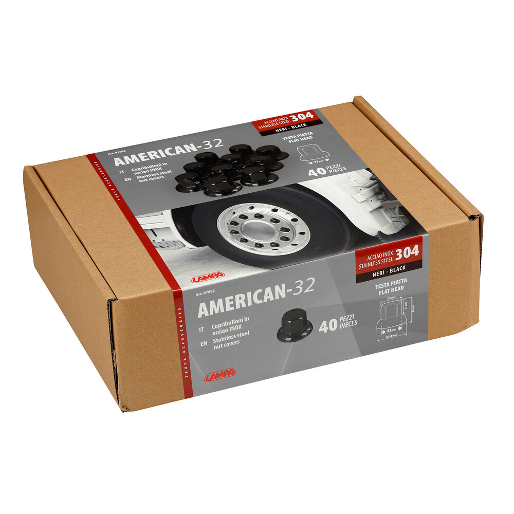 ΚΑΠΑΚΙΑ ΠΑΞΙΜΑΔΙΩΝ/ΜΠΟΥΛΟΝΙΩΝ ΦΟΡΤΗΓΟΥ AMERICAN STAINLESS STEEL Φ32mm ΜΑΥΡΟ LAMPA - 40 ΤΕΜ.