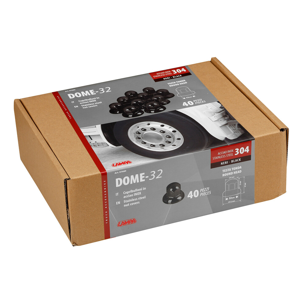 ΚΑΠΑΚΙΑ ΠΑΞΙΜΑΔΙΩΝ/ΜΠΟΥΛΟΝΙΩΝ ΦΟΡΤΗΓΟΥ DOME ΣΤΡΟΓΓΥΛΑ STAINLESS STEEL Φ32mm ΜΑΥΡΟ LAMPA - 40 ΤΕΜ.
