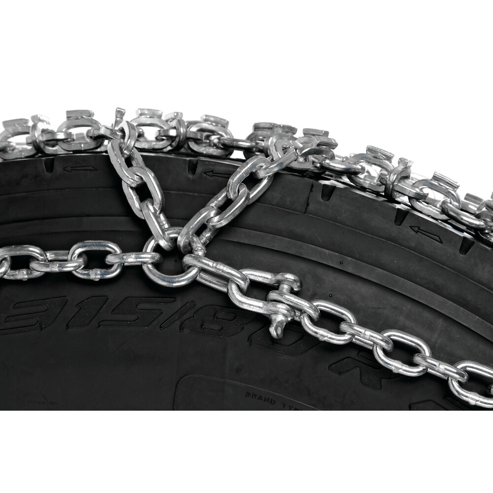 - Διπλή αλυσίδα με συμμετρικό μοτίβο με λαβή συνδέσμων σε σχήμα "διαμάντι" για απόλυτη πρόσφυση στον πάγο (diamond pattern).