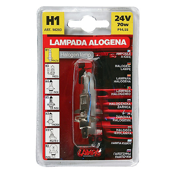 Λάμπα αλογόνου, H1 24V, 70W, P14,5s σε συσκευασία 1 τεμαχίου.