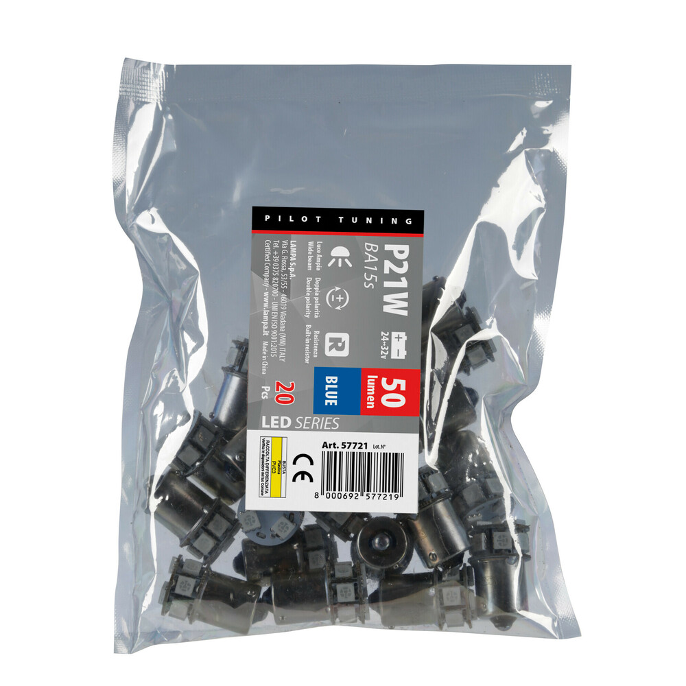 P21W 24/32V Ba15s 50lm 10xSMDx1CHIP LED CAN-BUS μπλε διάθλασης από την εταιρεία LAMPA, ιταλικής προέλευσης.